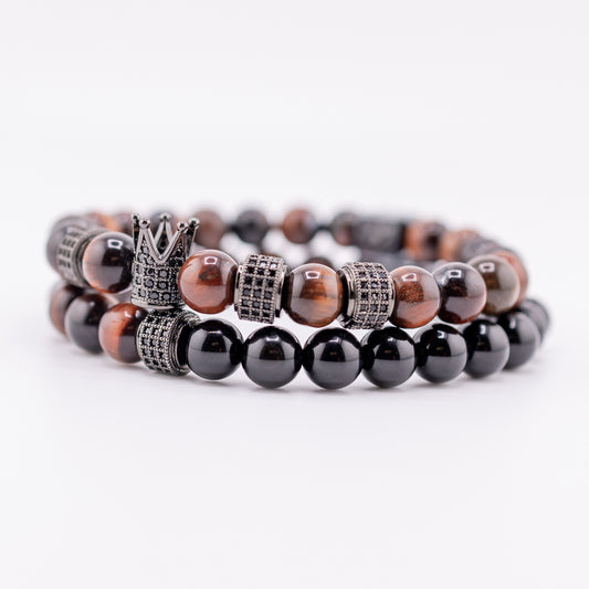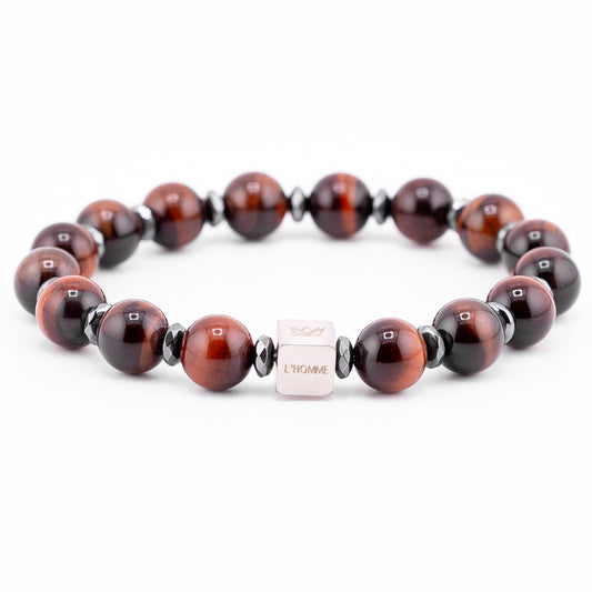 Pulsera Signature Majestic Ojo de Tigre Rojo y Ónix