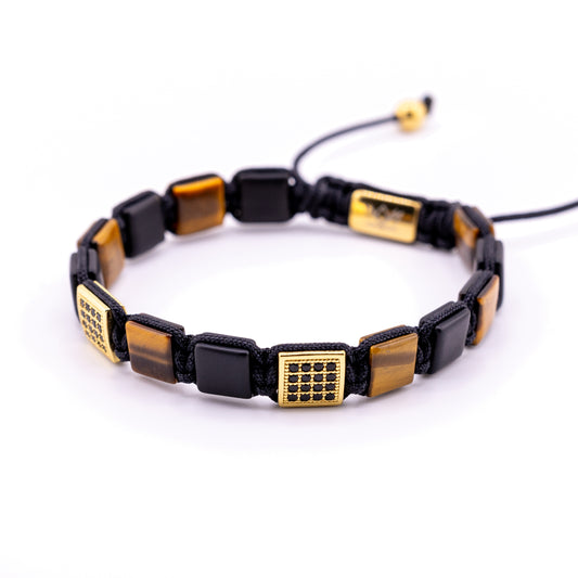 Pulsera Signature Gemcube Ojo de Tigre Chocolate y Zirconia