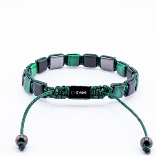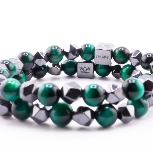 (1) Pulsera Signature Diamond Ojo de Tigre Verde y Hematita