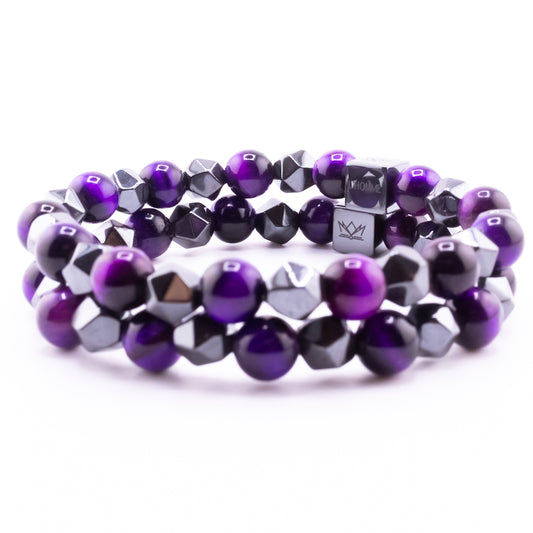 (1) Pulsera Signature Diamond Ojo de Tigre Morado y Hematita