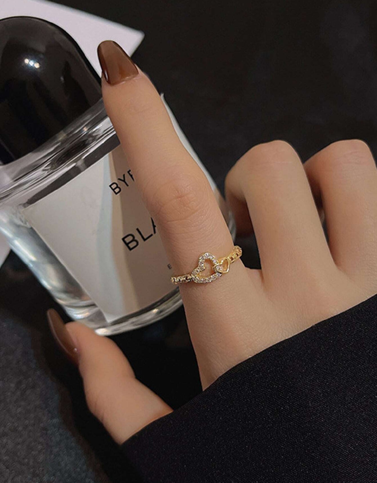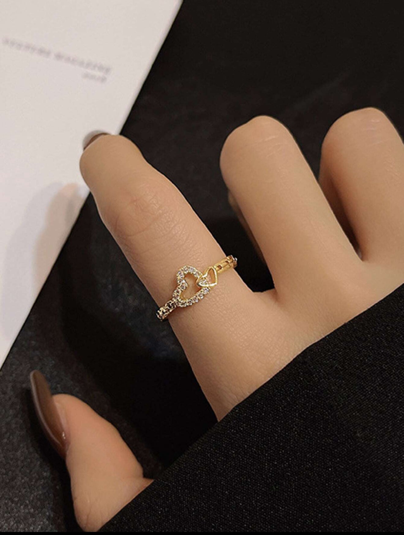 Este anillo dorado y doble corazón con circonio es elegante y moderno. Un anillo único para una ocasión especial que destacará entre los demás. ¡Encanto a todos con este anillo de acero inoxidable de lujo!