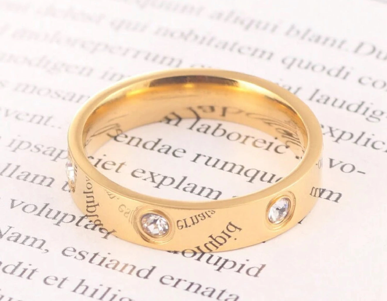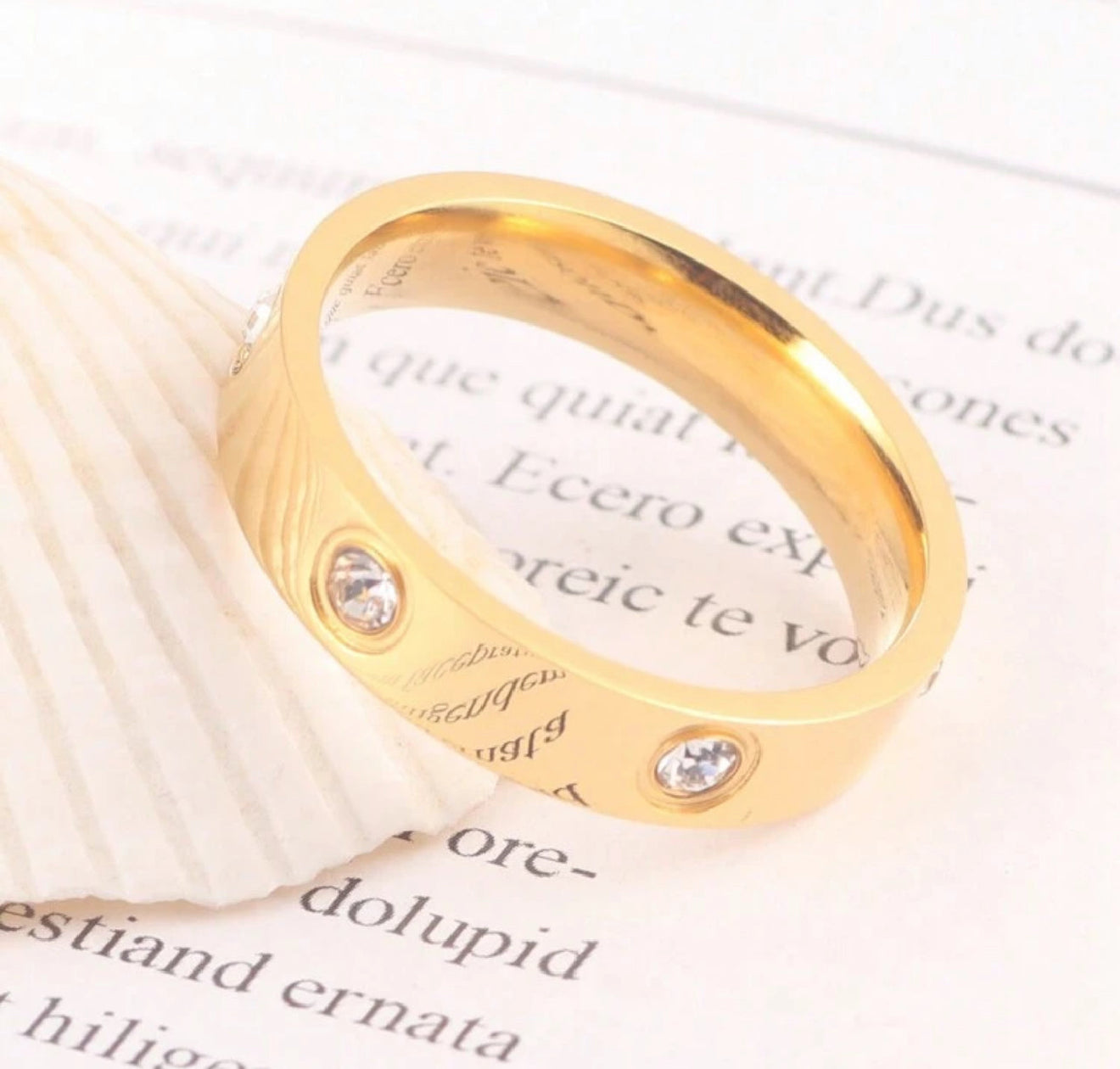 ¡Brilla con perspicacia! Nuestro anillo dorado con piedra de circonio es el accesorio perfecto para cualquier ocasión. Su diseño moderno y elegante es una celebración de la moda, luciendo glamour sin pasar desapercibido. ¡Añádelo hoy a tu armario!