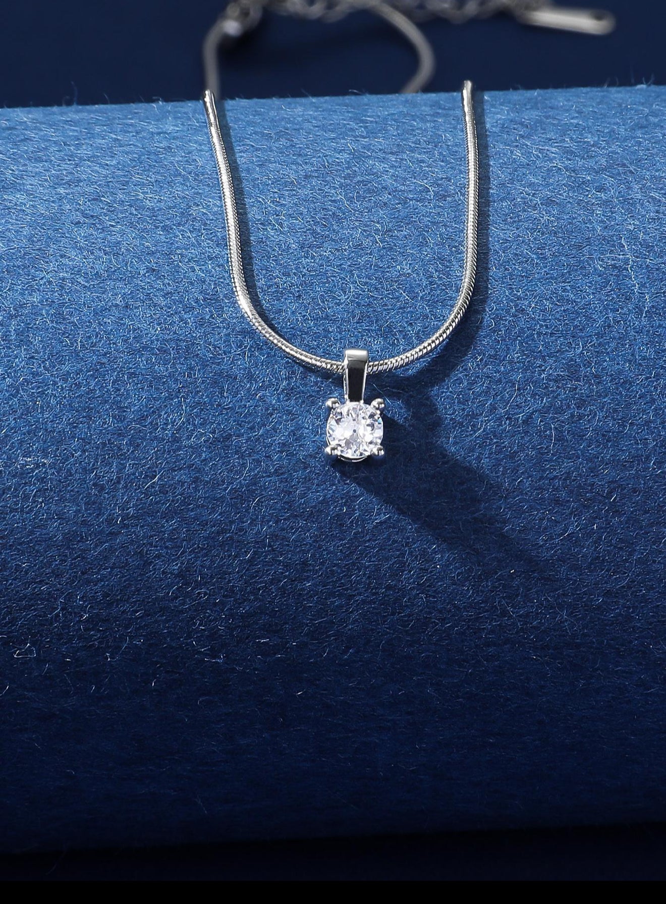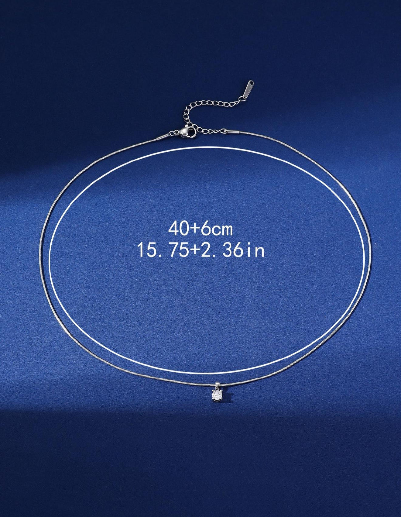 Este elegante collar está elaborado en acero inoxidable y cuenta con una brillante piedra de circonio en su centro. Su diseño minimalista lo convierte en un complemento versátil y sofisticado para cualquier ocasión. Añade un toque de lujo y clase a tu estilo con este collar exclusivo.