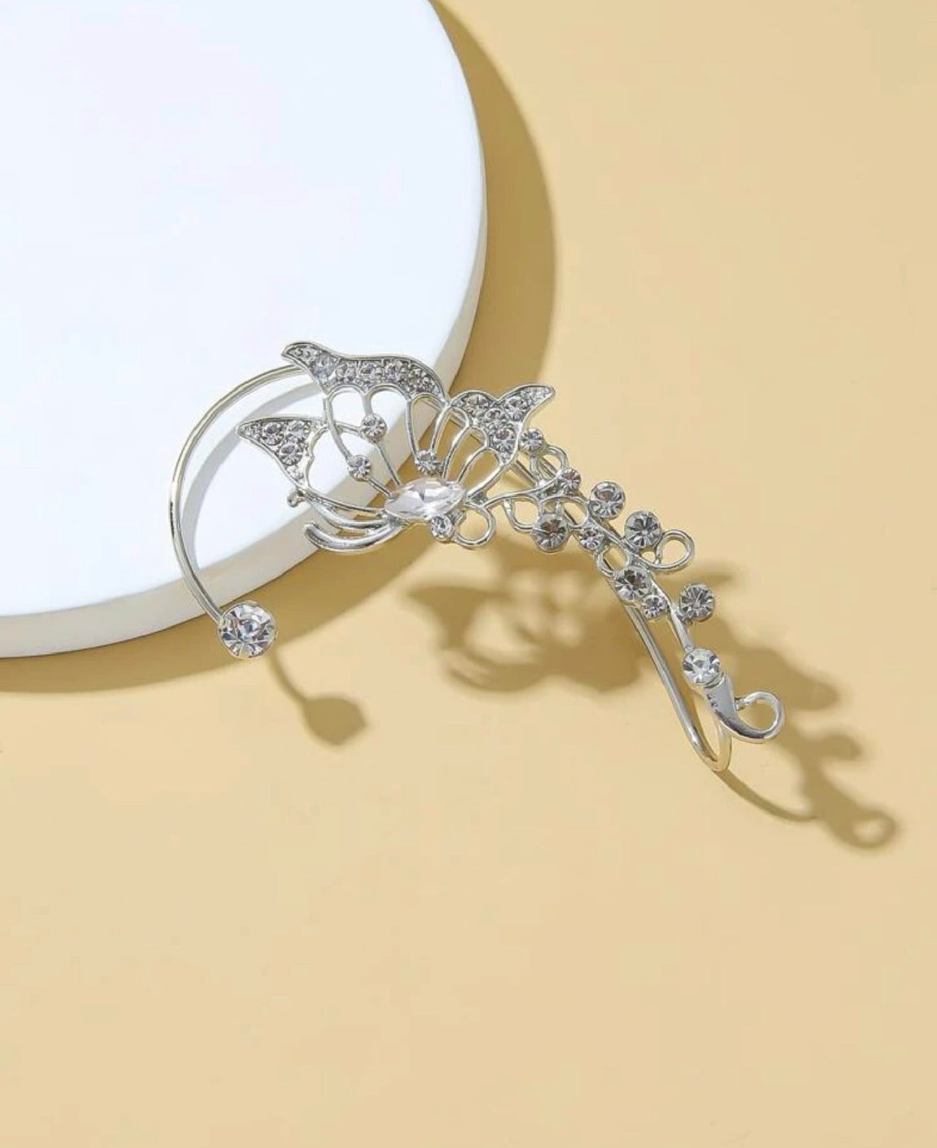 Elegante y femenino, el pendiente completo Leila cubre toda la oreja con un estilo llamativo. Hecho de acero inoxidable plateado, este pendiente es una excelente manera de añadir un toque de elegancia a tu look. ¡Luce y siente magnífica!
